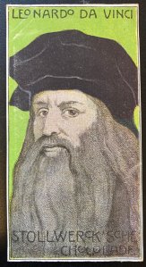 In the past year, Stollwerck Chocolate cards of famous subjects have risen sharply in value. Leading the way is an early card of Leonardo Da Vinci.