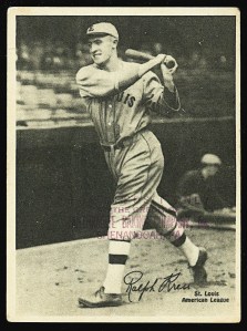 Kress isn’t a big name, but he was a solid player and a strong hitter, to be sure. He batted over .300 in three of his first four full seasons (make it four out of five, if you count his limited appearances in 1927, where he batted .304 in 27 plate appearances). He also hit .302 in 1938 and was a career .286 hitter. Three times he collected more than 100 runs batted in over 14 major league seasons with the Browns, White Sox, Senators, Tigers, and Giants. His Kashin card pictures him with the Browns.