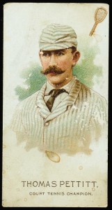 Pettitt is not your traditional lawn tennis player. He played a sport called Court Tennis, as indicated by the card, which is called ‘Real Tennis’ in America. It is said to actually have preceded the more common lawn tennis. This sport is played indoors and there are few regulation-sized courts even available throughout the world.