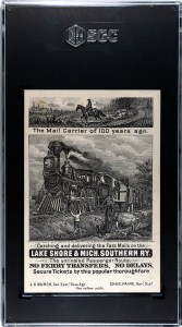 Measuring about 3″ x 4 1/2″, it’s about the size of your typical trade card, even though those vary slightly in size. And while trade cards can have different backs, the few of these I’ve seen have all had the same one — an advertisement for the Lake Shore & Michigan Southern Railway.