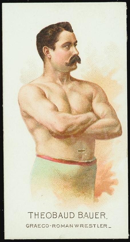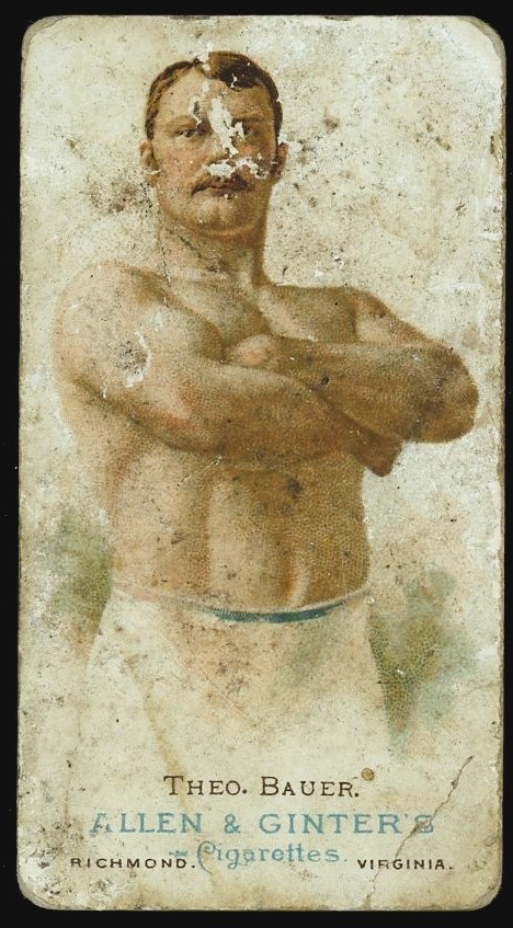 Seven of the 50 cards in Allen & Ginter’s first series featured wrestlers and Bauer would have been an obvious choice for inclusion. However, what was odd was that, while Allen & Ginter featured only fresh faces in its second set, Bauer returned in that series as well.