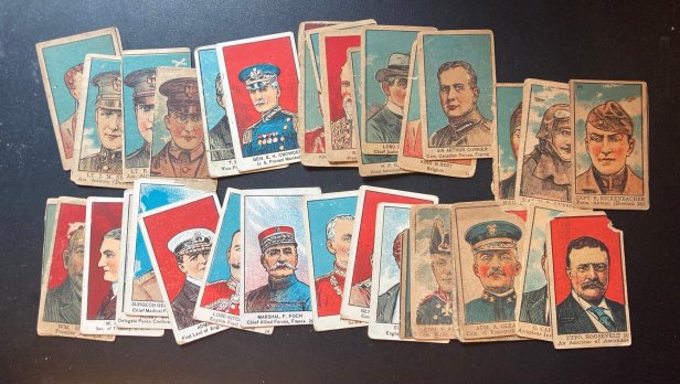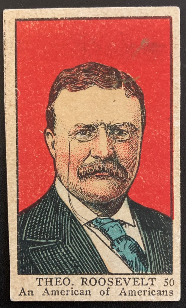 Then U.S. President Woodrow Wilson is, fittingly No. 1 in the set since this is an American release. He’s followed in the set by all sorts of other U.S. officials. In fact, the first 15 cards are all U.S. personnel. Representatives from England, France, Italy, and other nations follow. England’s Prime Minister Winston Churchill is another sought-after card. World War flying aces are another subset of this group. But the most valuable card in the set actually belongs to former President Teddy Roosevelt.